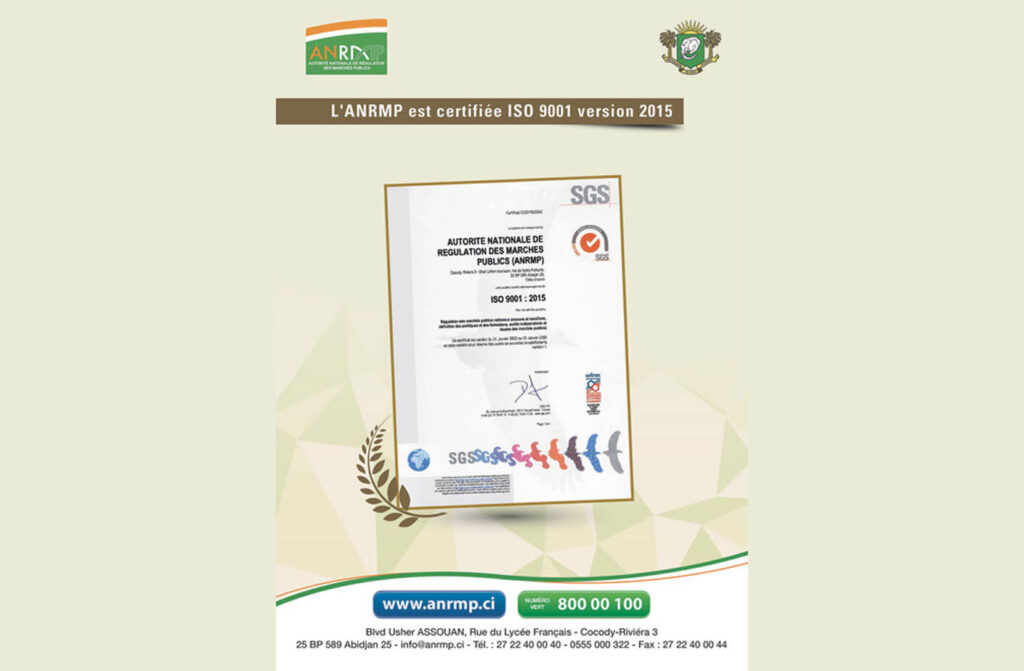L’Autorité Nationale de Régulation des Marchés Publics a obtenu la certification ISO 9001 version 2015 sur l’ensemble de ses activités